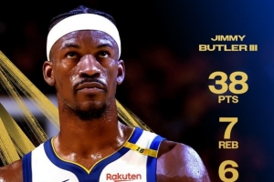 賽后,勇士官方評選出本場最佳球員,瘋狂殺傷并砍下全場最高分的巴特勒成功當(dāng)選。