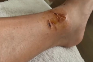 今天他在社媒曬出腳踝傷口照片,一道大血口非常醒目,看上去都有一些瘆人,他還為此配文“艱苦的客場挺不容易??”。