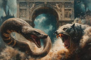 國米官方社媒曬出了為此役制作的海報,代表國米的靈蛇與代表羅馬的巨狼展開對決。