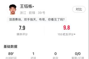 王鈺棟本場比賽數(shù)據(jù)↓