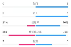 半場比賽數(shù)據(jù)如下(曼城在后):