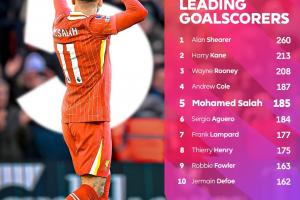 體育資訊04月28日訊 利物浦vs熱刺,薩拉赫打入一球,這是他生涯英超第185球,他超越阿圭羅,成為了聯(lián)賽歷史第5射手!
