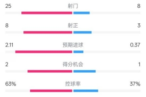 全場(chǎng)比賽數(shù)據(jù)如下(利物浦在前):