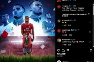 利物浦中場赫拉芬貝赫賽后更新社媒慶祝奪冠,這名球員曬出了自己兒時手捧獎杯的海報,并配文:“那個小男孩從未停止過相信,這座獎杯是送給他的。英超冠軍??”
