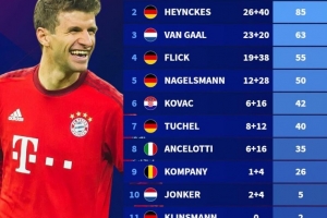 體育資訊4月28日訊 穆勒達(dá)成了自己在德甲500次出場里程碑,德轉(zhuǎn)盤點了穆勒在各任主帥執(zhí)教下比賽場次以及進(jìn)球數(shù)據(jù),具體如下:
