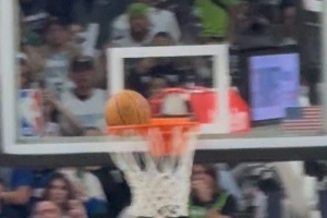 體育資訊4月28日訊 今日,湖人113-116客場不敵森林狼,系列賽1-3落后。賽后,湖人記者Dan Woike曬出了一張里夫斯絕平三分出手籃球在籃筐上彈出的截圖。
