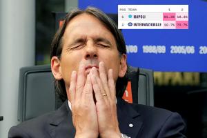 然而遭遇各項賽事三連敗后,國米先是退出意大利杯爭奪,如今連意甲冠軍也岌岌可危。機構(gòu)最新數(shù)據(jù)顯示,國米的奪冠概率已經(jīng)驟跌至18.7%,那不勒斯81.3%手握主動。