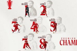 利物浦官方更新社媒動(dòng)態(tài),曬出全隊(duì)球員的名單,配文:“英超冠軍們!”