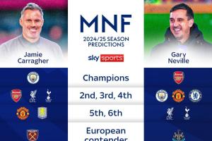 內(nèi)維爾則預(yù)測(cè)阿森納問(wèn)鼎,老東家曼聯(lián)排名力壓利物浦,降級(jí)三隊(duì)方面則是被內(nèi)維爾準(zhǔn)確命中。兩人均將利物浦新帥斯洛特視為值得關(guān)注的教練。