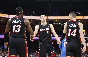 騎士和熱火系列賽四場的比分為:121-100、121-112、124-87、138-83。