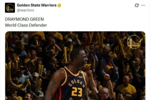 賽后,勇士官方曬出追夢(mèng)照片,并寫(xiě)道:“德拉蒙德-格林,世界級(jí)的防守球員?!?/p>