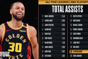 至此,庫里生涯季后賽總助攻數(shù)來到936次,超越凱文-約翰遜(935)排名NBA歷史第19位。在他身前是鮑勃-庫西(937)。