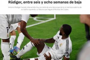 呂迪格將錯過本賽季剩余西甲,以及6月初的歐國聯(lián),但有望趕上世俱杯