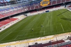 諾坎普球場(chǎng)正在進(jìn)行翻修工程,本周一球場(chǎng)的草皮鋪設(shè)完畢,而周二諾坎普球場(chǎng)就完成了足球場(chǎng)的專(zhuān)業(yè)畫(huà)線工作。盡管西班牙國(guó)內(nèi)大停電,但這并沒(méi)有影響到諾坎普球場(chǎng)的工程。