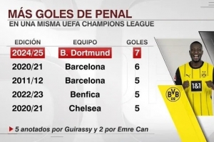 據(jù)ESPN統(tǒng)計,多特本賽季歐冠通過點球打進7球,創(chuàng)造歐冠歷史單賽季點球進球紀錄。