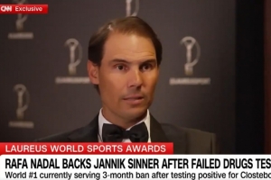 體育資訊4月30日訊 此前,現(xiàn)網(wǎng)球男單世界第一辛納因禁藥事件被禁賽3個月。西班牙紅土天王納達爾在接受采訪時,談到了辛納的禁賽。
