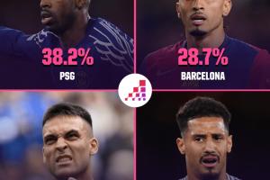 體育資訊04月30日訊 歐冠半決賽首回合巴黎vs阿森納戰(zhàn)罷,巴黎1-0客勝阿森納后實(shí)時(shí)奪冠概率升至第1,達(dá)到38.2%。