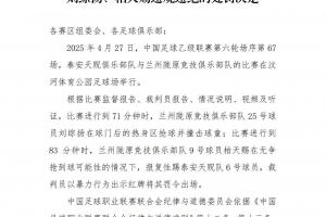體育資訊04月30日訊 中足聯(lián)官方公布中乙聯(lián)賽處罰決定,由于此前泰安天貺3-0蘭州隴原競(jìng)技比賽中球童翻過廣告牌進(jìn)場(chǎng)翻滾事件,山東賽區(qū)被通報(bào)批評(píng),并罰款3萬元。此外,蘭州球員劉綜揚(yáng)(非染紅球員)因?yàn)樽矒羟蛲?,被停?場(chǎng),罰款2萬元。