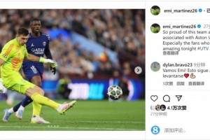 維拉門將馬丁內(nèi)斯社媒曬出比賽照片,并寫道:“為這支球隊(duì)和維拉的所有人感到非常驕傲,特別是今晚表現(xiàn)驚艷的球迷們!”