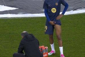 亞馬爾熱身中手按大腿提前退場,疑似該區(qū)域出現(xiàn)不適,離場時神情懊惱。