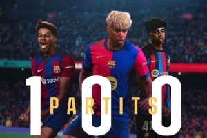 巴薩官方在社交媒體上曬出海報(bào),向亞馬爾表示祝賀。海報(bào)中為不同時(shí)期的亞馬爾造型,并有100場(chǎng)字樣。