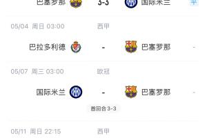 體育資訊05月01日訊 歐冠半決賽首回合,巴薩3-3戰(zhàn)平國米。
