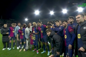 亞馬爾在巴薩3-3國米的歐冠半決賽首回合比賽中迎來了里程碑,這是他在巴薩第100場比賽,他也領(lǐng)取了俱樂部為他準備的紀念球衣,并與隊友進行合照。