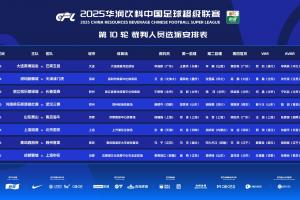 主裁判張雷、第一助理劉星、第二助理胡成軍、第四官員張超、VAR邢琦、AVAR孫盛宇、裁判監(jiān)督李東楠
