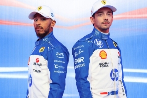 該賽車(chē)服以藍(lán)白色調(diào)為主,車(chē)隊(duì)車(chē)手勒克萊爾和漢密爾頓出鏡。在去年邁阿密大獎(jiǎng)賽中,法拉利車(chē)隊(duì)也發(fā)布了特別版賽車(chē)服。