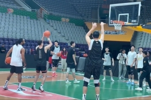 咪咕前方,賽前投籃訓(xùn)練,可以看出趙繼偉右手有明顯傷勢。
