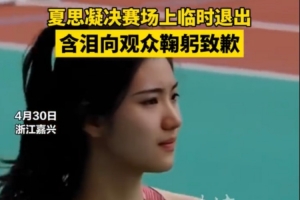 體育資訊5月1日訊 在昨天進(jìn)行的全國田徑大獎(jiǎng)賽嘉興站女子100米欄決賽中,夏思凝賽前因突發(fā)傷病無奈退賽,含淚向觀眾鞠躬致歉。