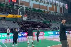 今天廣廈男籃將客場對陣遼寧男籃,賽前球隊來到球場提前熱身,吳驍籃下練習單手投籃,布朗三分手感火熱。
