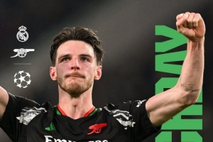 阿森納官方社媒發(fā)布了為此役制作的海報,首回合兩次任意球直接破門的賴斯單人出鏡。