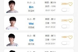 體育資訊5月1日訊 LPL登峰組明日BLG將迎戰(zhàn)WBG,今日BLG官宣北川加入隊伍,根據(jù)韓服排位統(tǒng)計小程序顯示,Wei疑似缺席訓(xùn)練賽晚間獨自在韓服Rank。