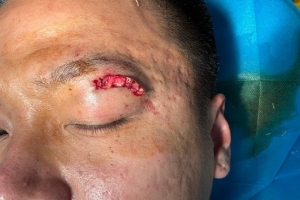 賽后,牛梓屹在社媒曬出眼部傷口照片,他配文寫道:“眼睛踢瞎了才會給紅牌嗎????”