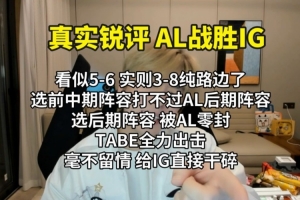 賽后B站up“真實電競”發(fā)布了視頻銳評本場比賽:TABE全力出擊毫不留情,率領(lǐng)AL干碎IG,打成路邊。