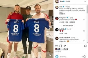 阿里造訪拜仁,與曾在熱刺共事的凱恩、戴爾見面,并將自己的8號科莫球衣贈送給老隊友。