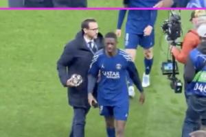登貝萊當(dāng)選次回合的全場(chǎng)最佳球員,不過(guò)他起初拒絕領(lǐng)取MVP獎(jiǎng)杯,領(lǐng)獎(jiǎng)之后的合影環(huán)節(jié)也是一臉嚴(yán)肅。