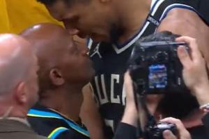 激情對噴??!字母哥賽后與哈利伯頓父親頂牛 隨后對其比大拇指~