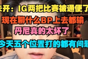 比賽結(jié)束后朱開(kāi)在直播里聊比賽,他直言:IG兩把比賽被通便了,現(xiàn)在聊什么BP上去都輸,丹尼真的太壞了,五個(gè)位置打的都有問(wèn)題。