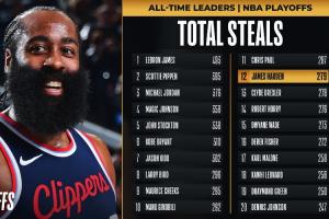 截至目前,快船球星哈登已經(jīng)送出1次搶斷,個人季后賽生涯搶斷來到279次,超越德雷克斯勒(278次)排名歷史第12,前面一位是保羅(287次)。