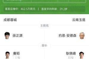 體育資訊04月16日訊 今晚19:35中超第7輪,成都蓉城vs云南玉昆。賽前首發(fā)陣容已經(jīng)公布。