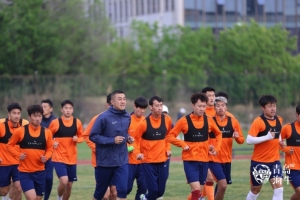 5月2日,結(jié)束與山東泰山隊(duì)的比賽后,球隊(duì)回到青島,訓(xùn)練備戰(zhàn)5月5日對(duì)陣長春亞泰的比賽。