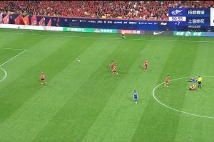 上半場補(bǔ)時(shí)階段,申花反擊機(jī)會,米內(nèi)羅面對多人防守選擇強(qiáng)突,被元敏誠直接放倒,裁判向元敏誠出示黃牌。