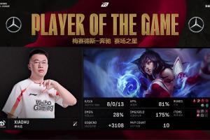 體育資訊5月2日訊 LPL第二賽段組內(nèi)賽WBG擊敗BLG,賽后Xiaohu憑借本場(chǎng)比賽阿貍的亮眼表現(xiàn)斬獲對(duì)局MVP!