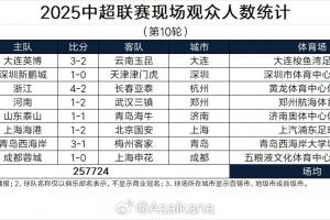 2025中超聯(lián)賽現(xiàn)場觀眾人數(shù)統(tǒng)計(第10輪)