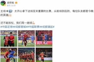 賽后蓉城后衛(wèi)胡荷韜更新社媒,曬出比賽照并配文寫道:“主場(chǎng)+3!太開心拿下這場(chǎng)至關(guān)重要的比賽,從前場(chǎng)到后防,每位隊(duì)友都是今晚的英雄!還不能放松,我們周一繼續(xù)!”
