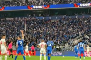 申花球迷在第28分鐘亮起閃光燈悼念布彭扎
