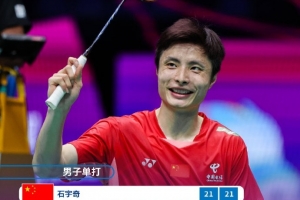 體育資訊5月3日訊 在剛剛結(jié)束的蘇迪曼杯羽毛球團(tuán)體賽半決賽中,中國選手石宇奇2比0擊敗日本選手奈良岡功大,幫助中國隊(duì)取得2比0的領(lǐng)先。