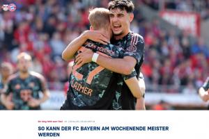 體育資訊05月03日訊 今天晚上21:30德甲第32輪,拜仁客場vs萊比錫,若是本場取勝,拜仁將提前2輪奪得德甲冠軍。拜仁官網(wǎng)列舉了拜仁若想奪冠可能發(fā)生的情況。